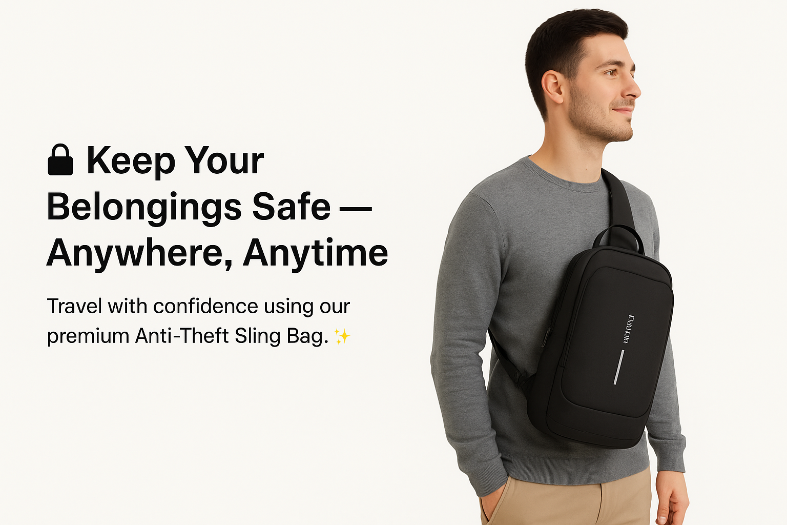 Experience everyday convenience with this Anti-Theft Waterproof Sling Bag — a sleek, lightweight, and secure companion for travel, commuting, and daily adventures. 🔐 Made with durable, water-resistant material, it protects your valuables from both theft and unexpected rain. 💧 Its ergonomic adjustable strap offers all-day comfort, while the spacious interior and smart pockets keep your phone, power bank, wallet, and accessories neatly organized. 📱✨ With a modern, minimalist design that fits any style, this sling bag delivers the perfect balance of security, comfort, and practicality for life on the move. 🎒🌟